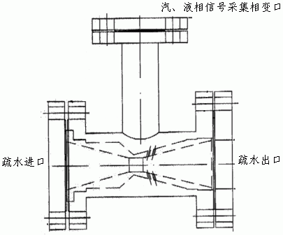 工作原理:自調節液位控制裝置,基于"汽液兩相流"原理,摒棄了傳統的浮球式,氣、電動式液位控制設備的缺點,自動調節容器出口液體的流量,從而達到更為穩定的容器液位.其原理是:疏水由閥體入口進入閥腔,相變管(信號管)根據液位高低采集汽相信號或液相信號直接進入閥腔,與疏水混合后流經特定設計的喉部.當液位上升時,汽相信號減少,因而疏水流量增加;當液位下降時,汽相信號增加,減少喉部有效通流面積,疏水流量降低,達到有效阻礙疏水的目的.