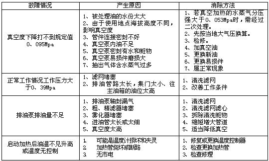(一) 系列多功能真空濾油機的型號和技術參數表[見表]