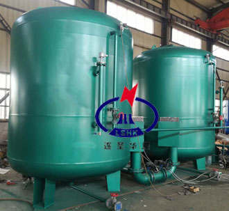 四、三位一體真空電化學(xué)除氧器設(shè)備組成 三位一體真空電化學(xué)除氧器主要是由除氧器(除氧頭)、高效旋膜裝置、連續(xù)反應(yīng)電解缸、增壓泵、真空泵機(jī)組、引水泵機(jī)組、PLC控制箱等部件組成。 三位一體真空電化學(xué)除氧器配有電解器,內(nèi)裝設(shè)有高效旋膜裝置,將自然降膜改為強(qiáng)力旋膜,增加液膜的更新度,并造成液膜沿管壁強(qiáng)力旋轉(zhuǎn),增強(qiáng)分散、傳質(zhì)功能;將相應(yīng)泡沸改為懸掛式泡沸?朔䦟又兴魉俑邥r(shí)泛點(diǎn)(飛濺),并將保持汽(氣)體通道;將獨(dú)立的三種傳熱傳質(zhì)方式縮化為一體,在一個(gè)單元的部件內(nèi)完成。由于它具有很高的效率和某些特殊功能,突破了其它除氧器的技術(shù)性能。 三位一體真空電化學(xué)除氧器運(yùn)行時(shí),除氧器處于負(fù)壓狀態(tài)。在高位安裝時(shí),電解罐出口與鍋爐給水泵進(jìn)口的距離應(yīng)較大,最好不小于10米;低位安裝時(shí),電解罐出口與引水泵機(jī)組相聯(lián)接,使負(fù)壓水升壓后進(jìn)入鍋爐給水泵。真空泵機(jī)組中配用了特種真空泵,具有設(shè)計(jì)結(jié)構(gòu)緊湊,耗功極低。并具有很高的抽吸效率,在同等條件下抽氣量比其它真空泵高一倍。噪聲低,無(wú)振動(dòng),安裝布置更簡(jiǎn)單。引水泵機(jī)組的作用是在除氧器低位安裝時(shí),通過(guò)引水泵將負(fù)壓水升壓后接入鍋爐給水泵。 三位一體真空電化學(xué)除氧器投運(yùn),第一步把除氧器的冷卻水箱的水位補(bǔ)到溢流口,溢流口閥門(mén)為開(kāi)式,冷卻水箱的補(bǔ)水口也是正常補(bǔ)水,保證冷卻水箱水溫在30℃,關(guān)閉相關(guān)閥門(mén),先把除氧器的水位補(bǔ)到運(yùn)行標(biāo)準(zhǔn)水位。啟動(dòng)真空泵,打開(kāi)吸入管道上的閘閥,除氧器的真空度達(dá)到-0.09Mpa時(shí),打開(kāi)進(jìn)水閥門(mén),開(kāi)啟鍋爐給水泵,被除氧水進(jìn)入旋膜器,在0.2Mpa的水壓下形成高效率水膜裙,在高真空下運(yùn)行,把水溫度提高約30℃-60℃,氧氣充分吸出被真空泵吸出排入冷卻水箱。除過(guò)氧的給水進(jìn)入電解器電解除氧,再次進(jìn)入電化學(xué)罐除氧,除氧水被排入三級(jí)化學(xué)罐進(jìn)行化學(xué)除氧,鍋爐給水泵將除過(guò)氧的水送給鍋爐。除氧器停用時(shí)必須先關(guān)閉吸入管道上的閘閥,再停真空泵,如果先停真空泵,不關(guān)吸入管道上的閘閥,除氧器處于真空狀態(tài),會(huì)將冷卻水箱的水倒吸至除氧器,影響除氧效果。 五、三位一體真空電化學(xué)除氧器自動(dòng)控制系統(tǒng) 1、設(shè)備正常運(yùn)行屬全自動(dòng)控制,無(wú)人值守,設(shè)備全套運(yùn)行由PLC智能控制,所有運(yùn)行參數(shù)及控制點(diǎn)都由PLC自動(dòng)監(jiān)測(cè)、自動(dòng)調(diào)整。所有閥門(mén)及真空泵組自動(dòng)控制開(kāi)啟(亦可手動(dòng)開(kāi)啟)。 2、設(shè)備在線運(yùn)行真空度控制在-0.08Mpa以上。確保除鹽水進(jìn)入除氧器,并在高效旋膜裝置內(nèi)強(qiáng)力旋轉(zhuǎn),形成水膜裙,氧氣得到充分析出。一旦真空度低于-0.08Mpa,設(shè)備自動(dòng)報(bào)警,PLC控制系統(tǒng)自動(dòng)啟動(dòng)電化學(xué)除氧,此時(shí)需人員進(jìn)行現(xiàn)場(chǎng)調(diào)整修復(fù)。當(dāng)真空度修復(fù)PLC控制系統(tǒng)自動(dòng)停止電化學(xué)除氧。 3、水位由液位自動(dòng)控制器控制,如水位低于設(shè)計(jì)水位時(shí)設(shè)備將自動(dòng)報(bào)警。PLC控制系統(tǒng)自動(dòng)打開(kāi)旁路進(jìn)水閥。水位修復(fù)PLC控制系統(tǒng)自動(dòng)關(guān)閉旁路閥。 4、PLC自動(dòng)跟蹤控制電動(dòng)給水調(diào)節(jié)閥及真空度,始終保持 兩極真空電化學(xué)除氧器處于安全穩(wěn)定運(yùn)行。 六、三位一體真空電化學(xué)除氧器訂貨須知 兩極真空電化學(xué)除氧器進(jìn)行技術(shù)選型需提供如下數(shù)據(jù): 1、兩極真空電化學(xué)除氧器的出力。 2、兩極真空電化學(xué)除氧器的安裝高度。 3、兩極真空電化學(xué)除氧器進(jìn)水壓力,進(jìn)水溫度。